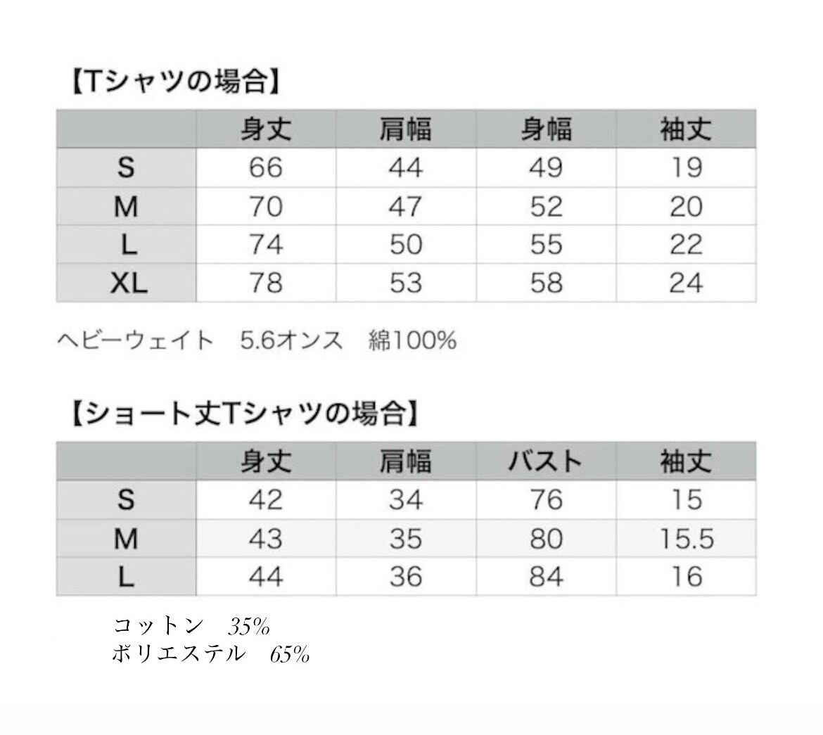 ショート丈 T:ポリエステル65%、コットン35%