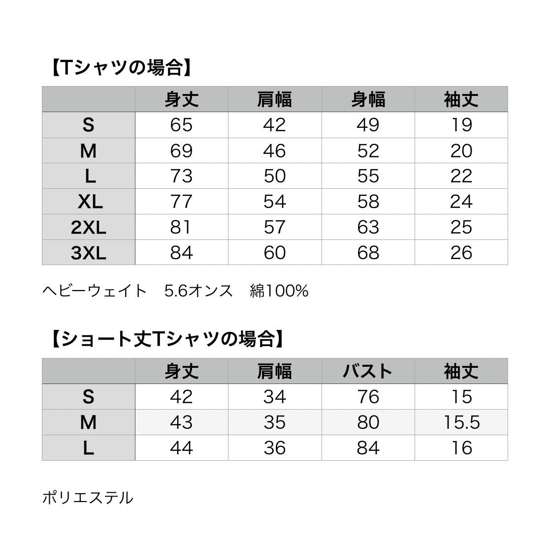 ショート丈 T:ポリエステル65%、コットン35%